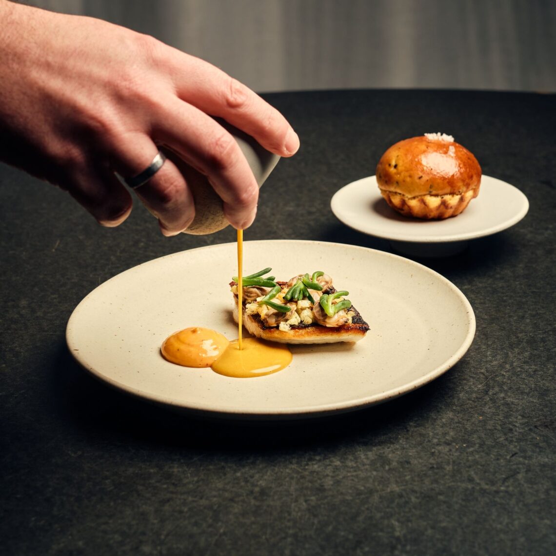 The menu is refreshingly stripped-back, offering just a few beautifully composed dishes per course. What it lacks in length, it more than makes up for in flair and execution. On a recent visit, dinner began with a pair of oysters – each showcasing a different personality. One was bright and fresh, topped with apple, sorrel and cucumber; the other had a fiery edge, served with a rhubarb hot sauce. Both were perfectly judged.