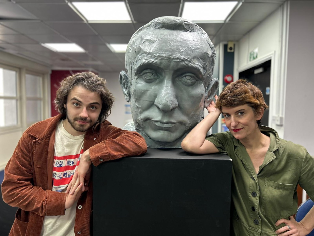 Performed in Park Theatre’s intimate Park90 space, the stage is surrounded by audience on three sides. Award-winning filmmaker and theatre director Alex Helfrecht (The White King, A Winter’s Journey), makes good use of the small stage and props. The majority of the action takes place in a shed of a derelict large house, with black boxes holding various sculptures (production design by Rob Davis). The projections by Ryan Watson were great. There’s endless shelving of sculptures and a window shaping changing weather, which does emphasis the small world Allen lives in. Nell Golledge’s lighting is well done.