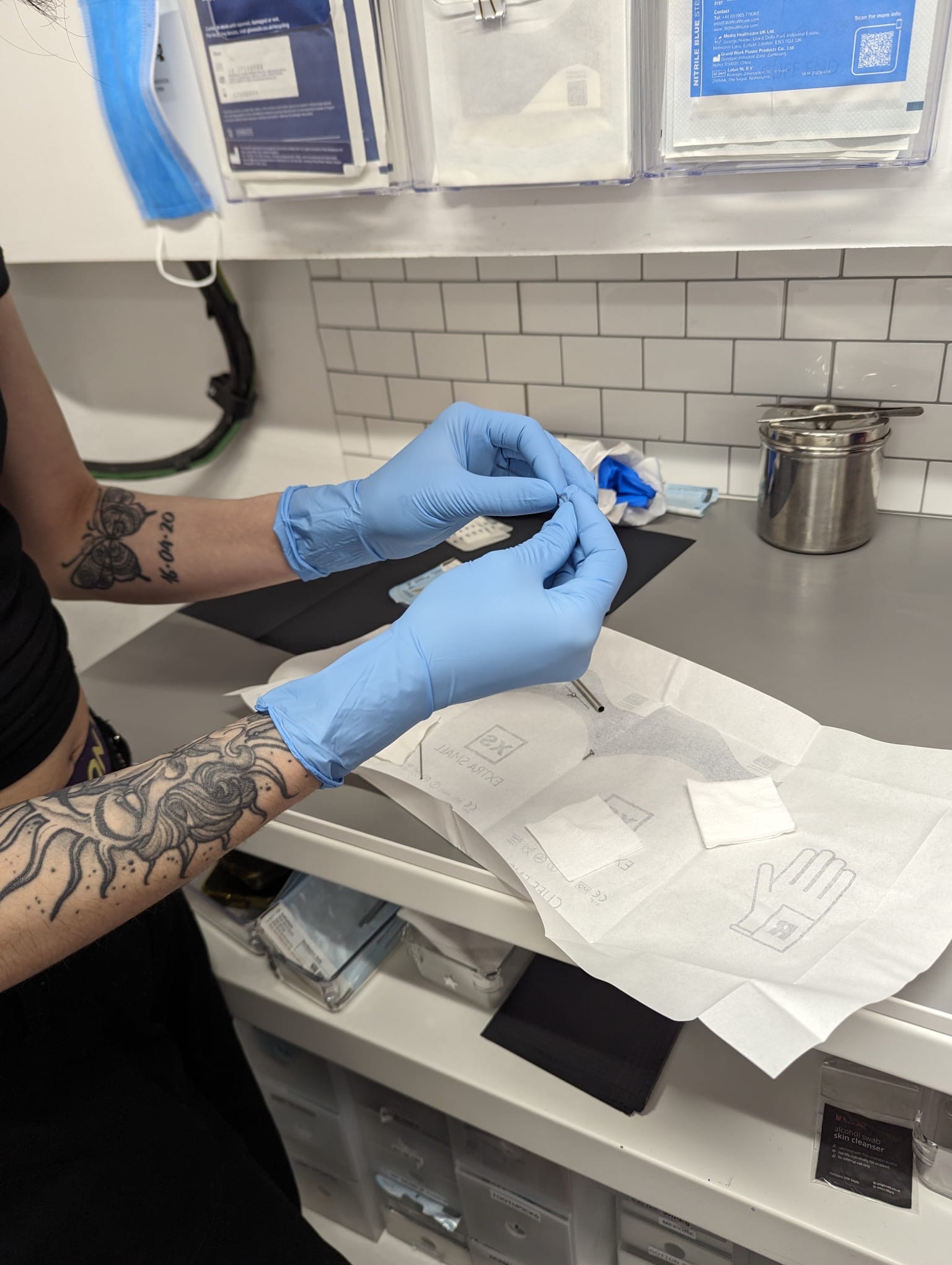 That’s a brief history of Metal Morphosis but how was the service. It was professional and friendly. I was early for once to an appointment. There before the shop in Carnaby Street was even open but I was welcomed to the store by Smash (one of the piecers), they were full of life, warmth and energy. They showed me the consent form which is easy to fill out. We had to have a little joke at this time as for some reason I was getting nervous, as I hadn’t had a piercing for a good few years now and I was planning on getting both nipples done. Smash then passed me over to my piercer of the day Mia, once again professional and friendly. She was explained the process of getting the nipples pierced, to start they make sure that there is enough area to pierce this is to ensure that the jewelry will hold. Sadly to me and also a little relief I didn’t have enough area, however, as I was there Mia ask if I wanted else done I asked for her to recommend what I should get done and it was the Helix that she suggested. This will be my first ear piercing. Mia set up up the telescope and the needle in the clean and sterile room, getting a little nervous again but Mia was calm. The piercing itself was quick and with only a little scratch as the needle went through my ear.