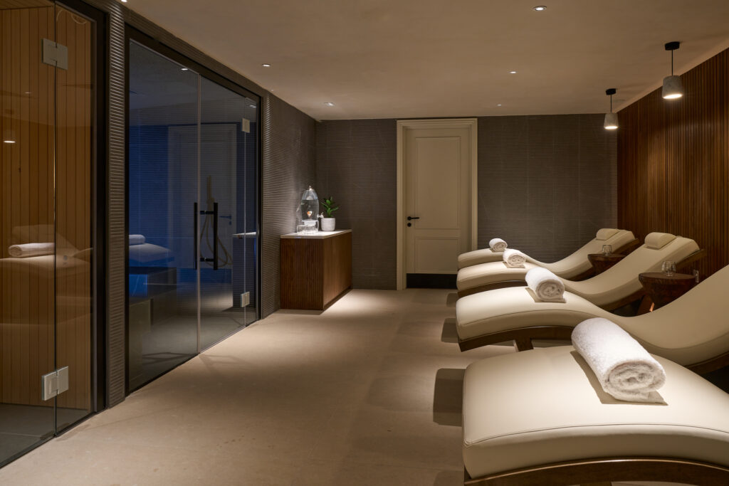 Stepping off the lift into the basement of the hotel is like entering a cave of calm. The spa is dimly lit and cosy, cocooned in walnut panelled walls. It offers four treatment rooms, a steam room, sauna, relaxation area and gym; alongside treatments from world-renowned British brand, Oskia.