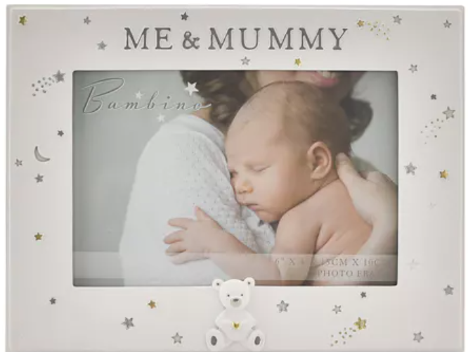 Bambino Resin Mummy and Me photo frame 6×4 Is there anything more beautiful than the bond between a new mother and her baby? Why not capture that feeling in a photograph, and share it with a new mummy on her first Mother’s Day.