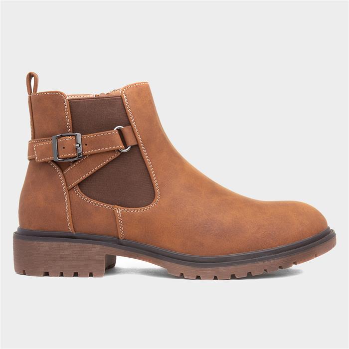 Featuring a chic tan upper with a stylish buckle strap and offering both fashion and function. The inside zip, pull tab, and elasticated side panel ensure easy fitting, while their soft lining keeps you comfortable all day.