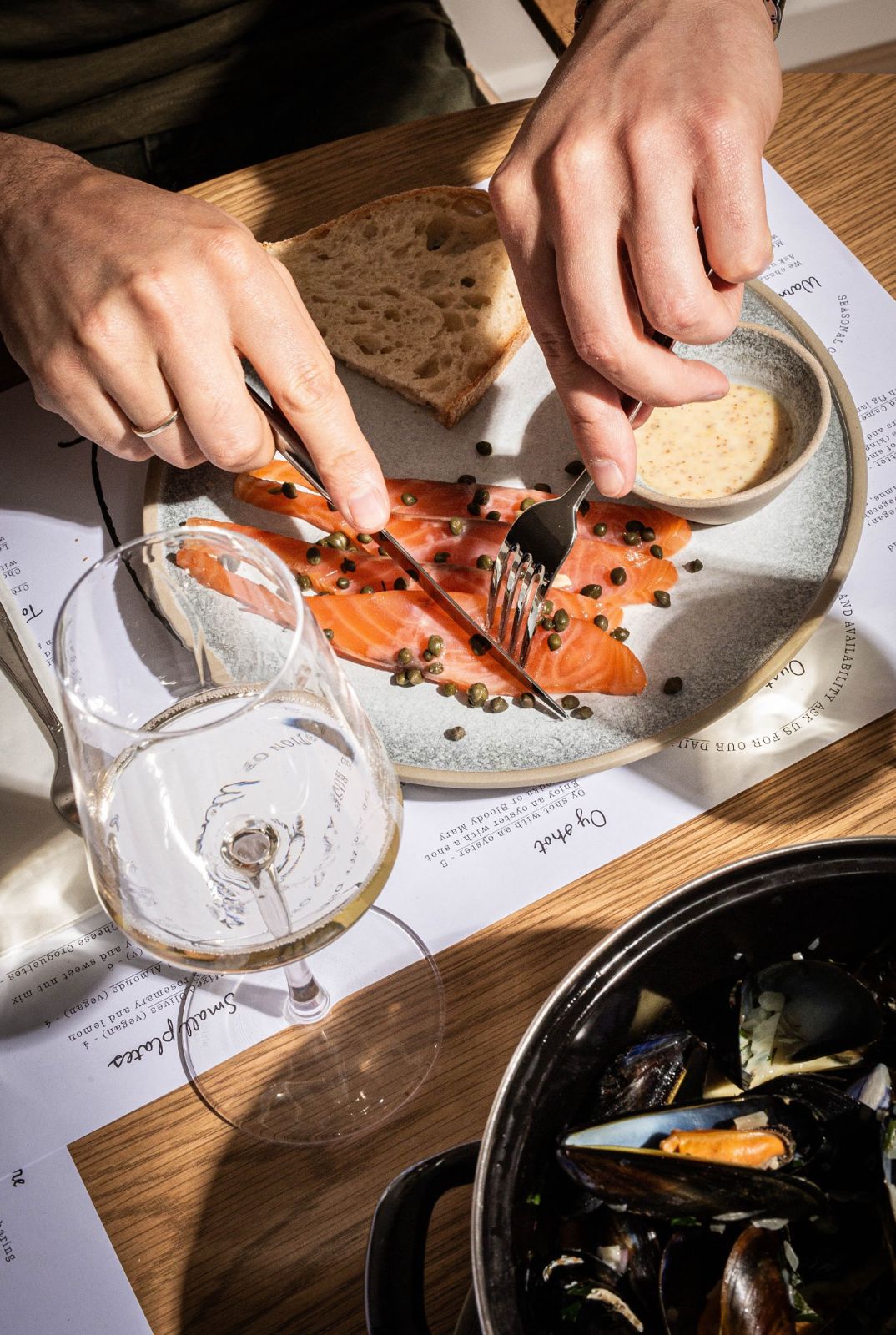 We started with oysters, which were the standout. They were fresh, clean, and served with minimal fuss-exactly how oysters should be. Each one had that crisp, salty flavour that makes you instantly want another. The sardines, served with bread and pickles, were another highlight. The fish was rich and full of flavour, balanced nicely by the sharpness of the accompaniments. To round things out, we had moules marinière. The mussels were tender and generously portioned, with a broth of white wine, garlic and cream that was excellent for dipping with sourdough. It’s a simple dish, but when done well, it’s hard to beat, and Oy Bar definitely got it right.