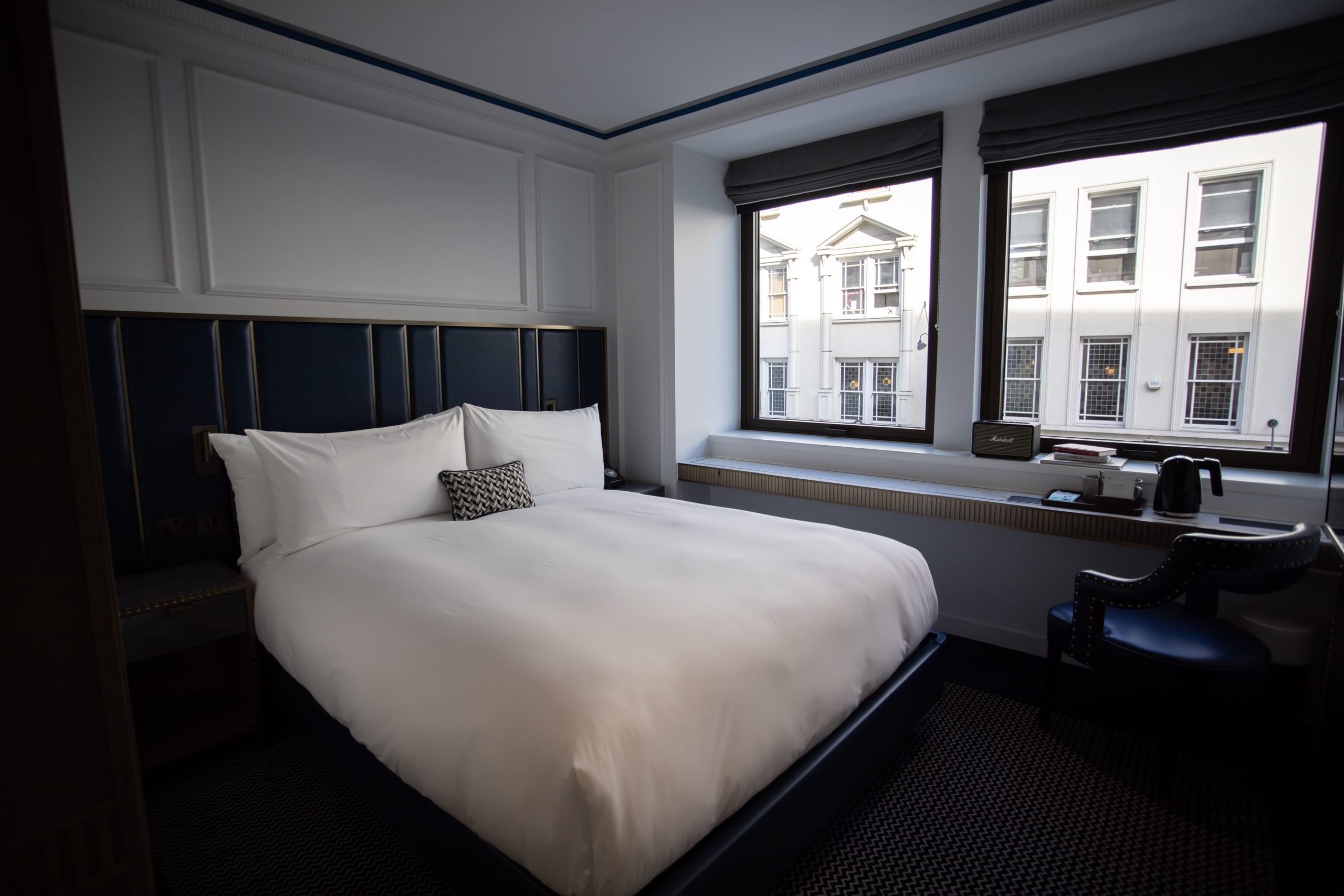 Upon entering the room, I was in awe of the beautiful modern but cosy decor and fantastic colour scheme. It was Class with a capital C! Furnished with awesome little extras like the Marshall Speakers and the Blueair Purifer, Page8 is all about the little touches that take their hospitality to the next level. Each room also comes with a complimentary mini bar, which gets topped up every day of your stay. Perfect for when you just want to retire in your room.We had a lovely nights’ sleep as the King Size bed was extremely comfy. Not to mention, the pillows (and I say this with hand on heart) were probably the best hotel pillows I’ve had the pleasure of sleeping on.