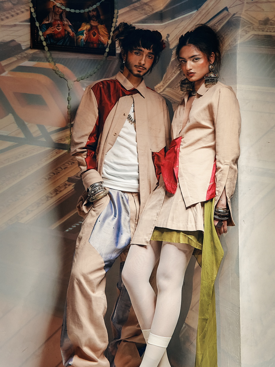 LOBOMAR was established in 2023 by siblings Marco and Marcella Lobo and is born out of their upbringing between Köln, London, and Amsterdam. With Indian-Italian roots, they grew up in a blend of cultures, questioning traditional notions of identity and authenticity. LOBOMAR challenges rigid categories and celebrates the power of personal choice and context in shaping one’s identity. The Final Orders Please collection is made out of handwoven organic cotton made by artisans in Tamil Nadu and makes use of preloved Saris sourced from Marcello and Marco’s aunt’s community in Mumbai.