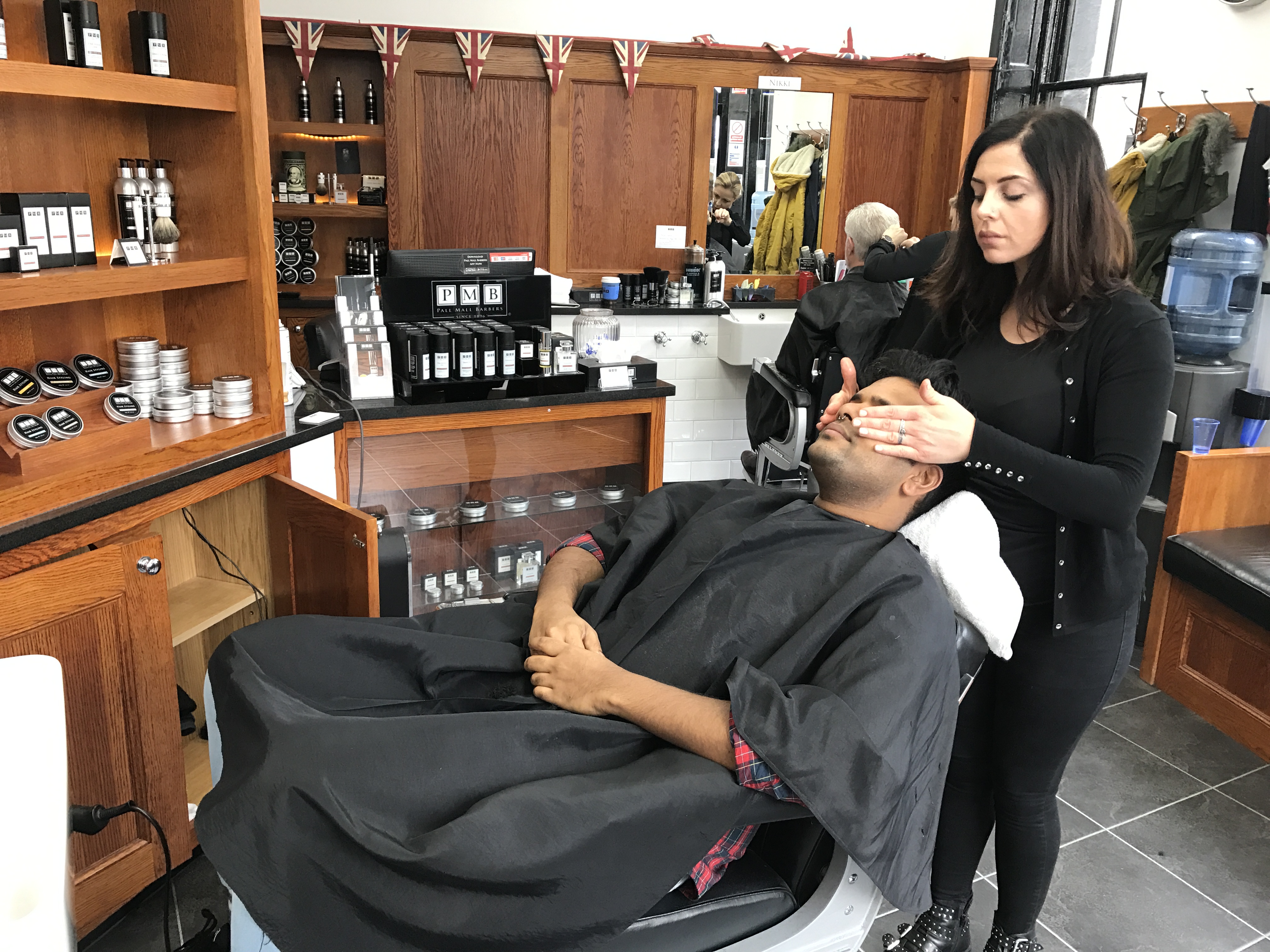 I had the lovely, entertaining and welcoming Cara serving me. Definitely ask for her! We started off with the PMB pre-shave scrub. Bearing in mind i had no idea what this 5 step shave included, this was a lovely surprise. Basically a face massage followed by an amazing hot-towel face wrap.