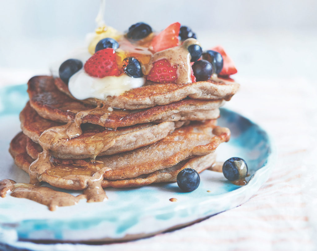 Coco nutty classic – A stack of coconutty pancakes drizzled with Pip & Nut Coconut Almond butter, coconut yogurt, fresh berries and honey. There is also: Nana- nuts – A stack of coconutty pancakes drizzled with Pip & Nut Peanut butter, sliced banana and dark chocolate shavings.