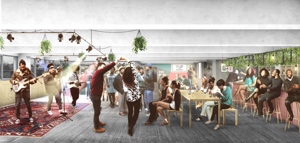 Levels 3 and 4 will contain 20 private studios for freelancers, plus a co-working space with 80 desks, music rehearsal spaces and recording studios.