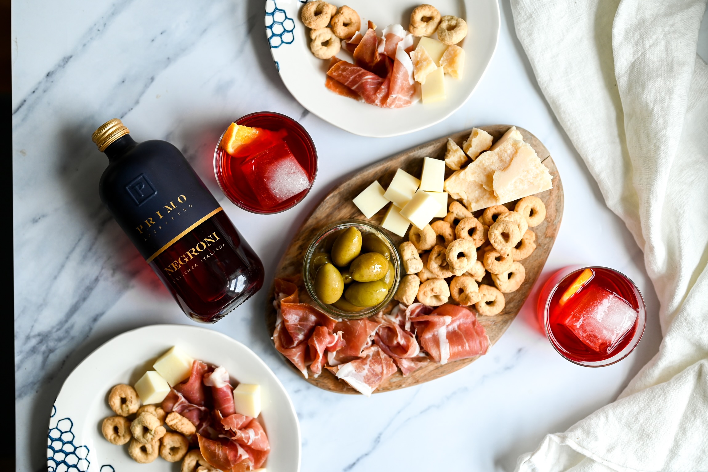 Aperitivo Negroni pairs marvellously with the selection of artisan delicacies.