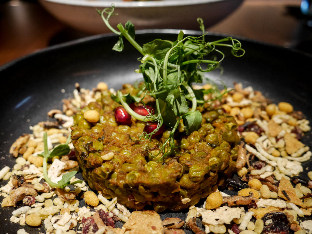 There are a few options available for brunch. We went for the a la carte option/ brunch for the table option. The starters arrive at the same time. Commencing with fresh green pea bhel, crispy rice burrata, fenugreek flavoured oval shaped papdi, and chilli crab cheese toast.