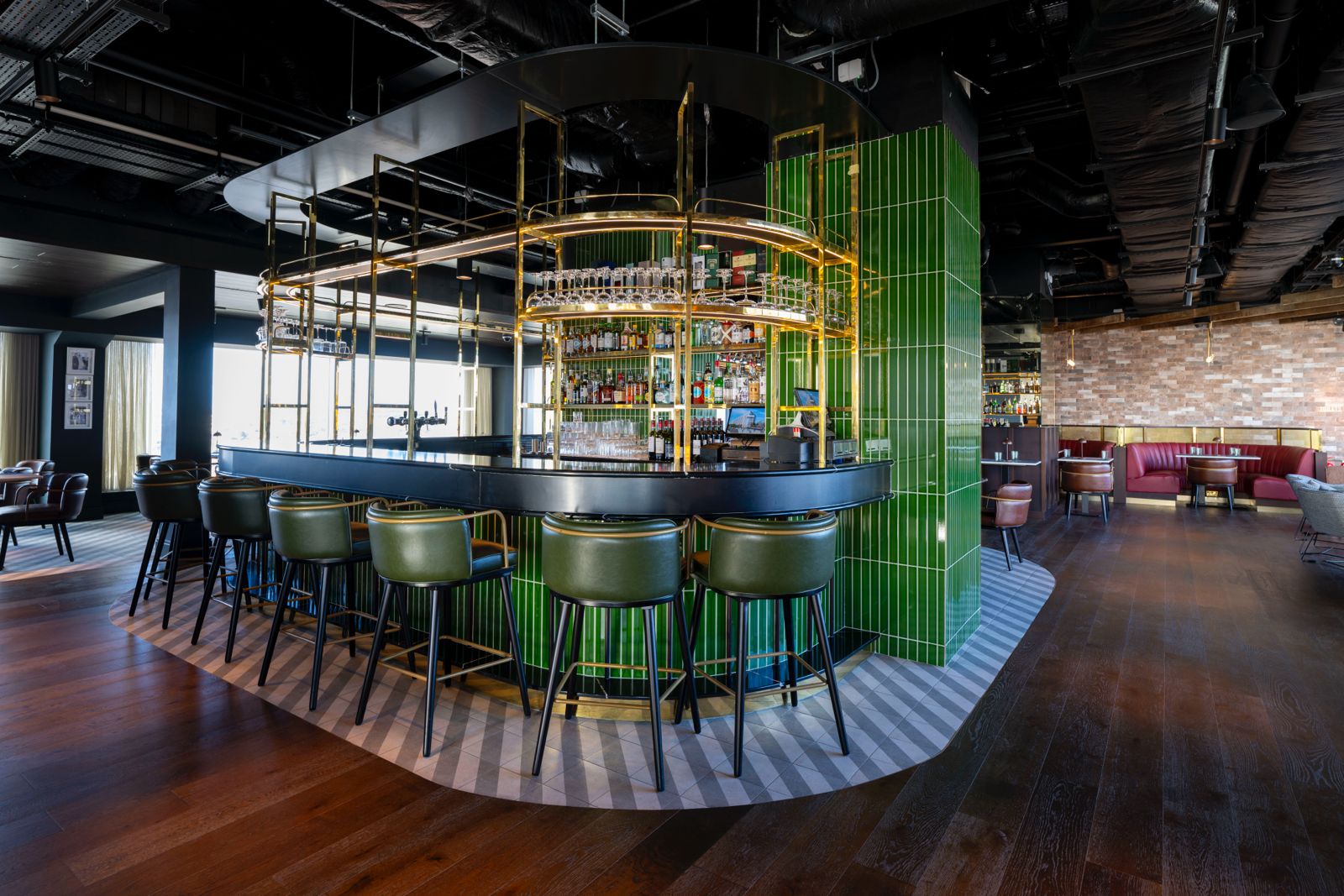 The hotel interior capitalises on the space provided by the location with a capacious lobby and reception area. This segues into a bar and restaurant area with a variety of seating options including an enclosed glass meeting room. This is one of nine event spaces within the hotel ensuring you can transition from work to play in style.