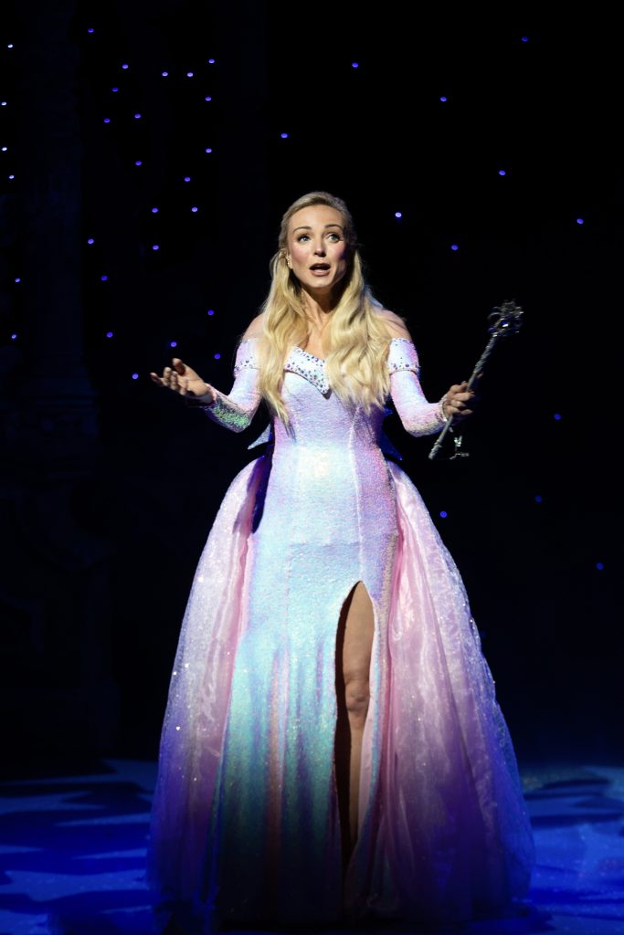 Award-winning actress Helen George, best known as Trixie in Call the Midwife, makes her pantomime debut as the Fairy Godmother. Having followed her career for fifteen years—from Call the Midwife to My Cousin Rachel and The King and I—I was eager to see her here, and I’m already planning to catch her in High Society. She sweeps in with pyrotechnic wand flourishes, dazzling gowns, and a mischievous smile, showing off her vocal talents. George nods to her TV role with a witty “call the midwife” line, and references her Strictly Come Dancing stint with a disco ball and sequins during “Walking in a Winter Wonderland.”