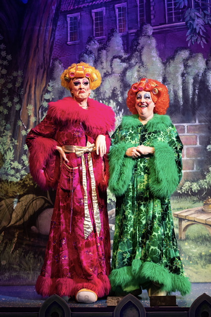 There are clever musical twists too: the Prince’s slipper search set to ABBA’s “Gimme! Gimme! Gimme! (A Man After Midnight) . ‘(Everything I Do) I Do It for You’ had us chucking as Prince and Buttons kept pulling each other off the stage. ‘I’d Do Anything’ was fun also fun. The comic “Hard-up Hall” number where Helen quips she’d be a midwife has us chucking.