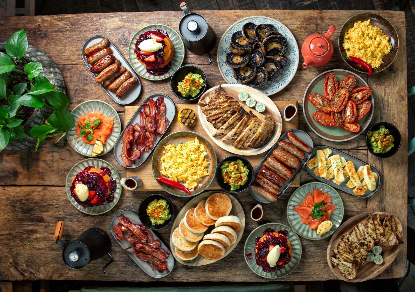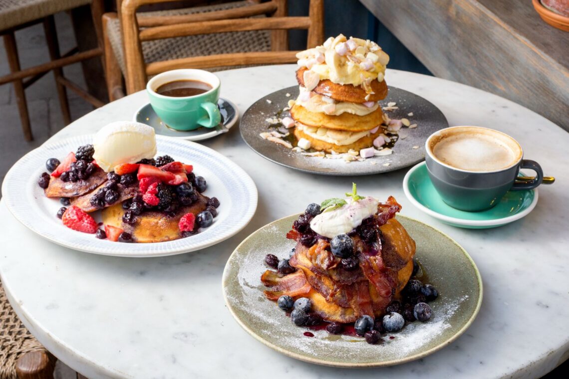 Then there’s the stack of malted deep-dish pancakes, a dish that feels more celebratory than obligatory. Served four different ways – including a classic berry compote with clotted cream, and an unapologetically indulgent version with buttermilk fried chicken and hot honey butter – these are pancakes with personality. Sweet or savoury, they’re impossible to ignore and hard to share.