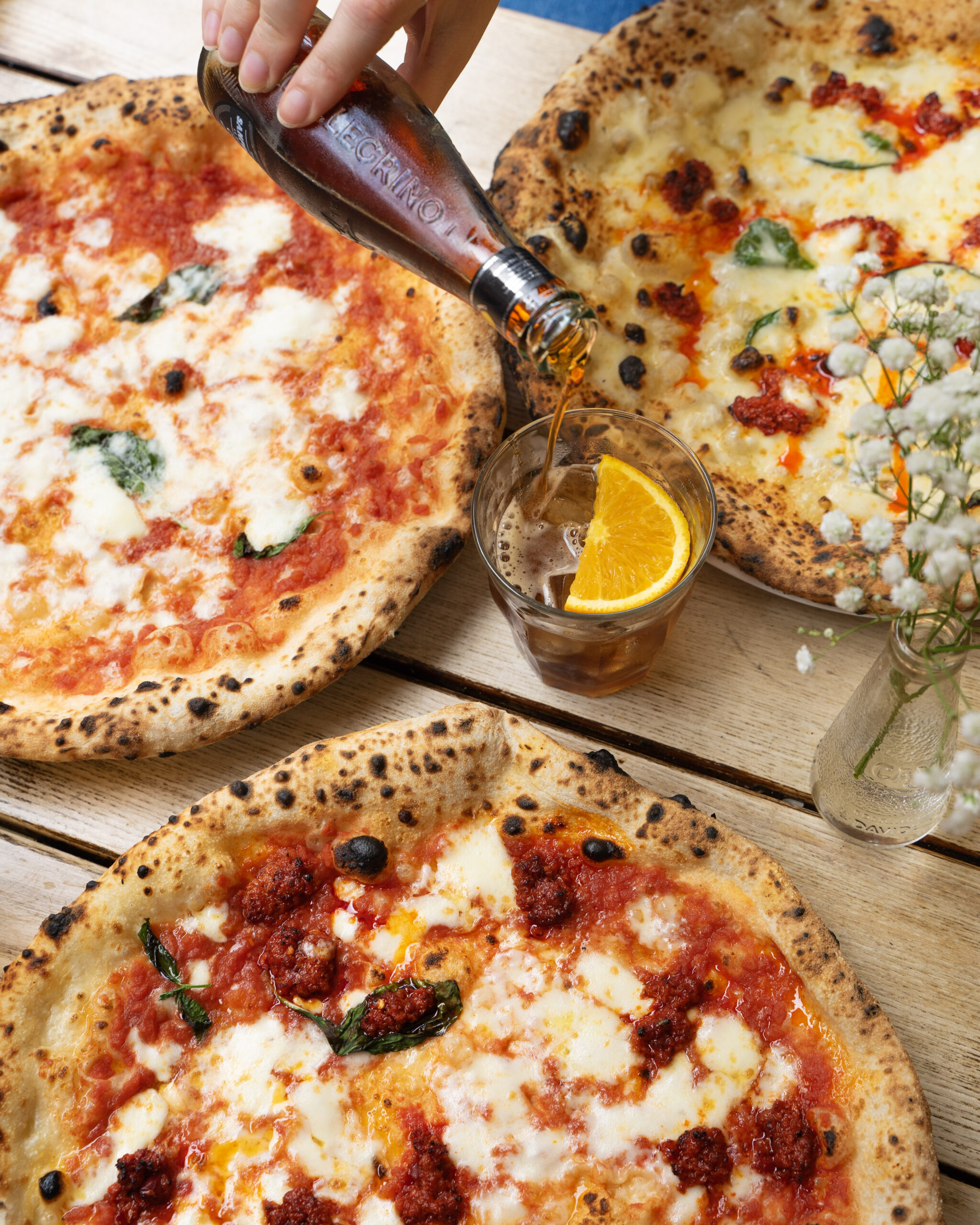 As well as Queensway, Rudy’s has other locations in Soho, Shoreditch, Fitzrovia and Spitalfields in London, and many other city locations across the UK. The new Rudy’s in Queensway also honours its authentic Neapolitan roots through the drinks menu, with a well-stocked bar serving iconic Italian spritzes, crisp Italian Poretti, and classic stirred-cocktails. We ordered our Spritz’s and got onto the difficult decision of which pizza to have.