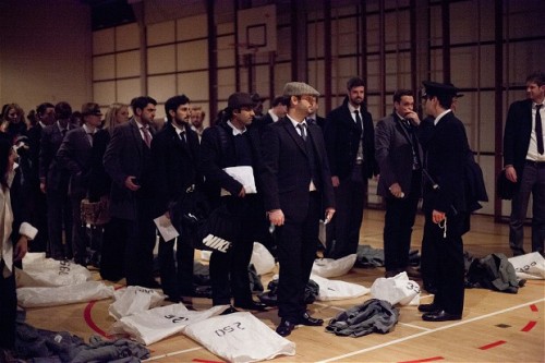 After a couple of hours (seemed like 5 mins!) a chap got shot outside, and we were all ushered into a room where riots broke out and singing began. I unfortunately was not granted parole (probably due to the defiant staring and kleptomatic tendencies) and neither was Lon. We were then filed outside, with hands ordered above our heads into what looked like a gym (oh and the wardens shoe fell out of my jacket while walking, which took a bit of explaining….) and all sat down. Then the film began playing on a massive old school projector jobby, with intermittent shouts or cheers from the other ‘prisoners’