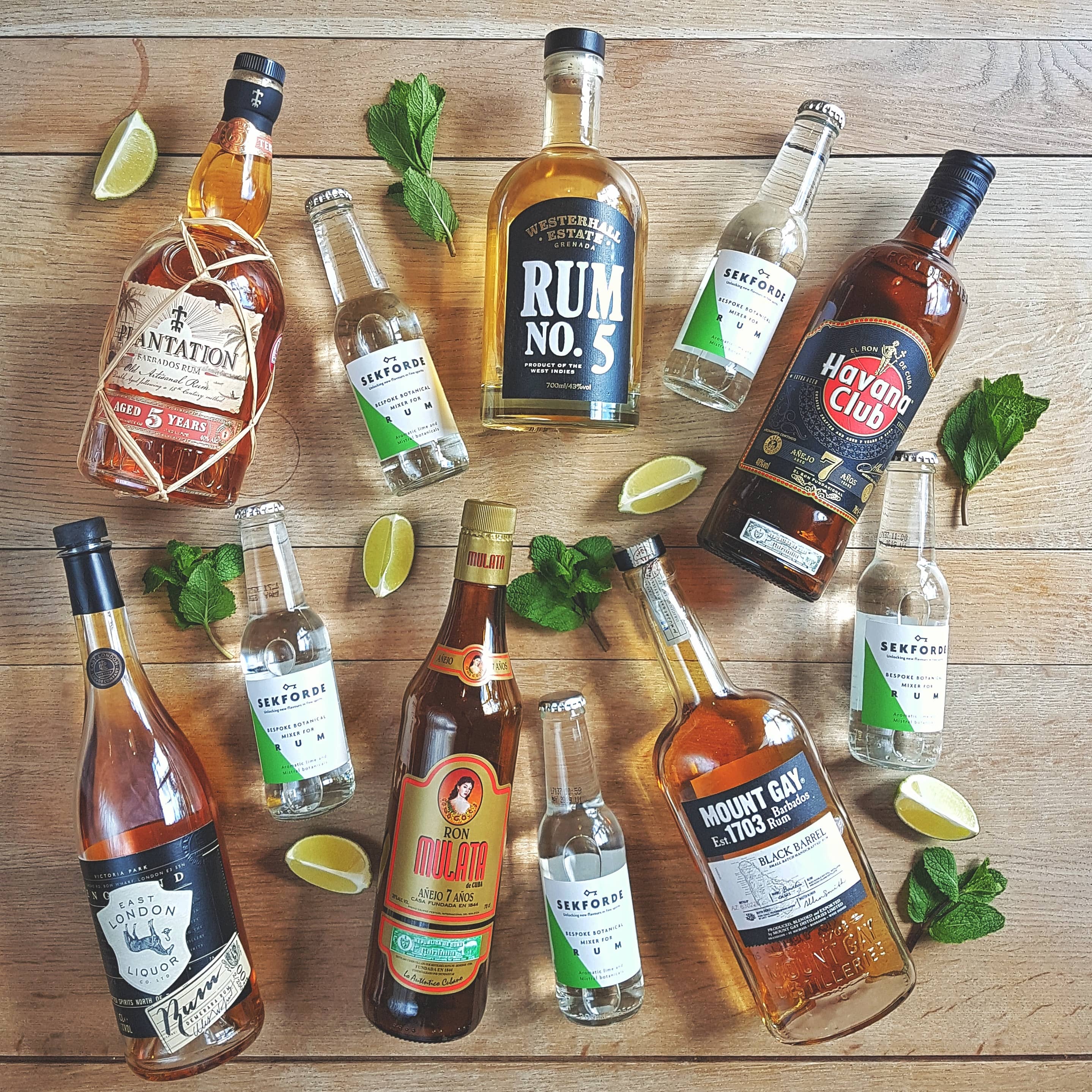 Muddle the blackberries with a few mint leaves in the bottom of a highball glass, then add the rum. Fill the glass with ice and top with Sekforde. Gently stir to mix the ingredients, then garnish with a sprig of mint.