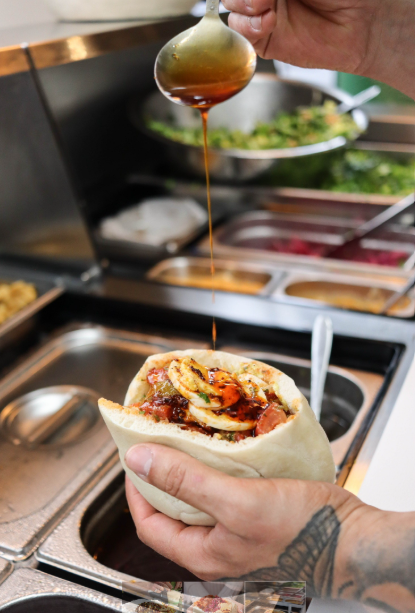 I was straight away drawn to Shuk, a stall inspired by Tel Aviv and the owner’s childhood memories of family, pita, spices & tahini. They have a selection of salads on their menu alongside the fluffiest pitas; all stuffed with meat and veggie options.