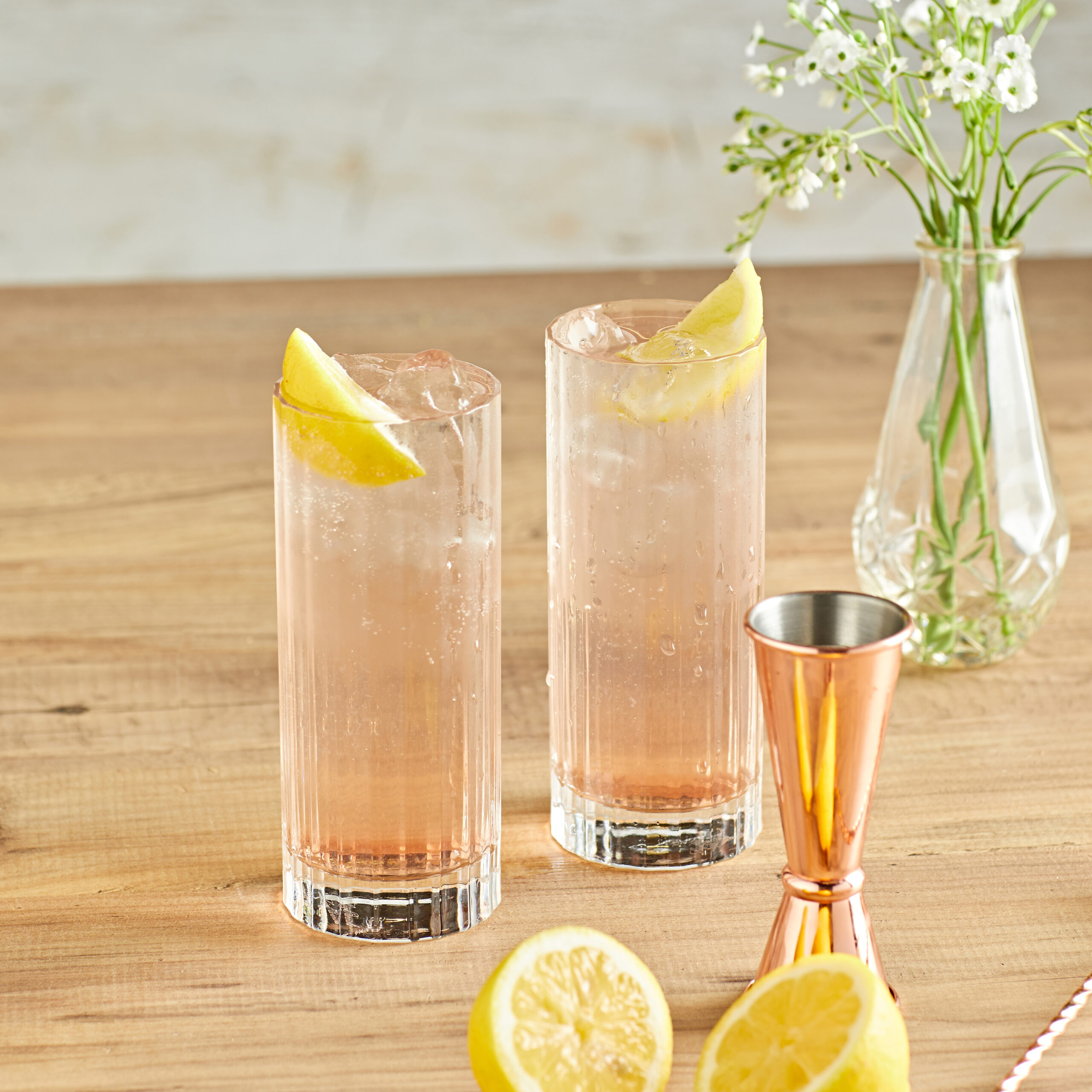 Build and stir gently in Collins Glass over ice, then top with the soda. Garnish with a lemon wedge.