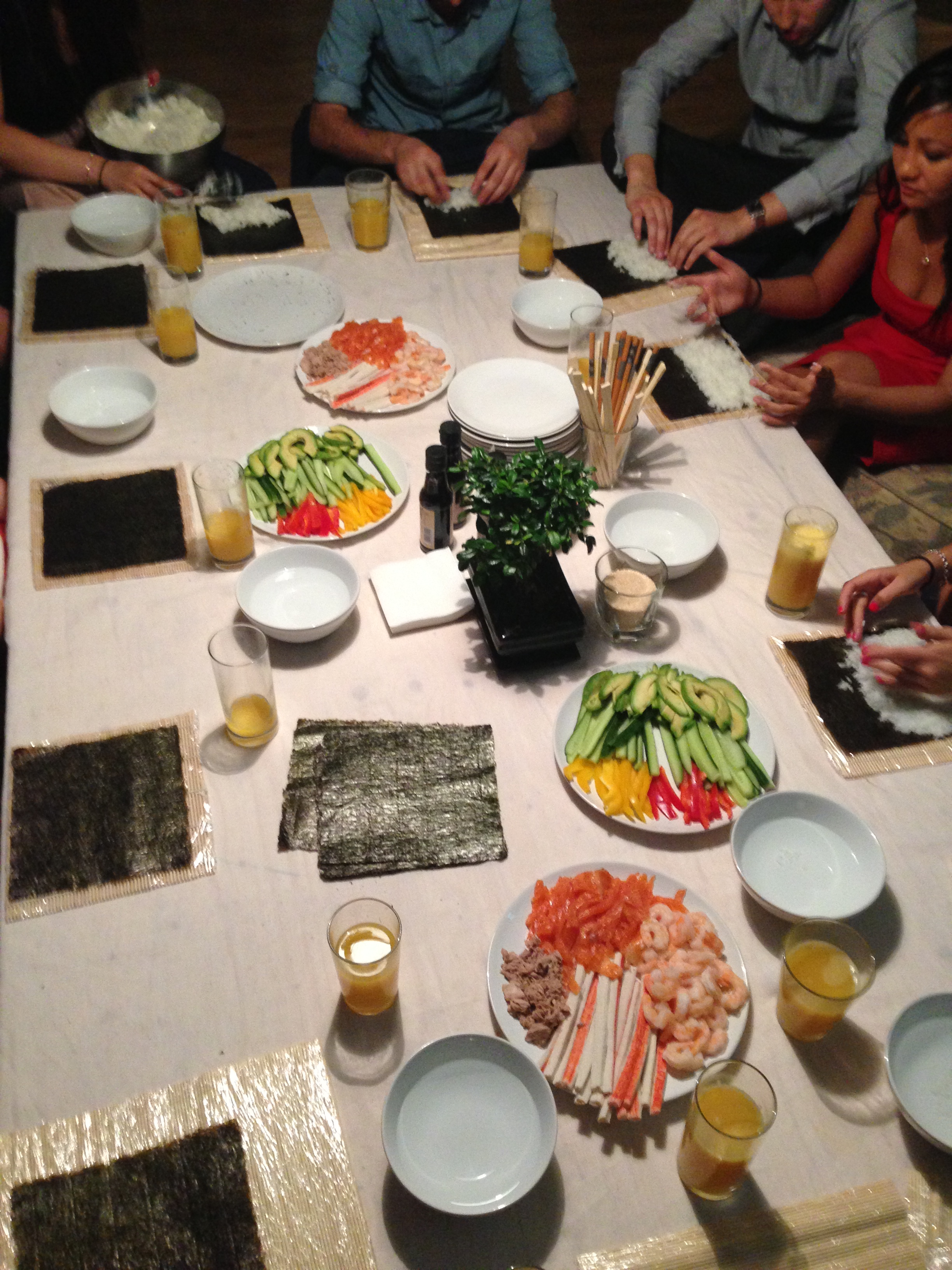 I was dining with the three hosts, my guest and several couples and the atmosphere was electric, plus the cocktails were pretty good. When we were told by the hosts that we were making our own sushi, I was shocked as I was hoping just to be fed. But I am really glad it was a do it yourself session, as it was the best sushi I have ever tasted hands down. We were taught how to make normal sushi rolls and the amazing California rolls, to say it got messy was an understatement.
