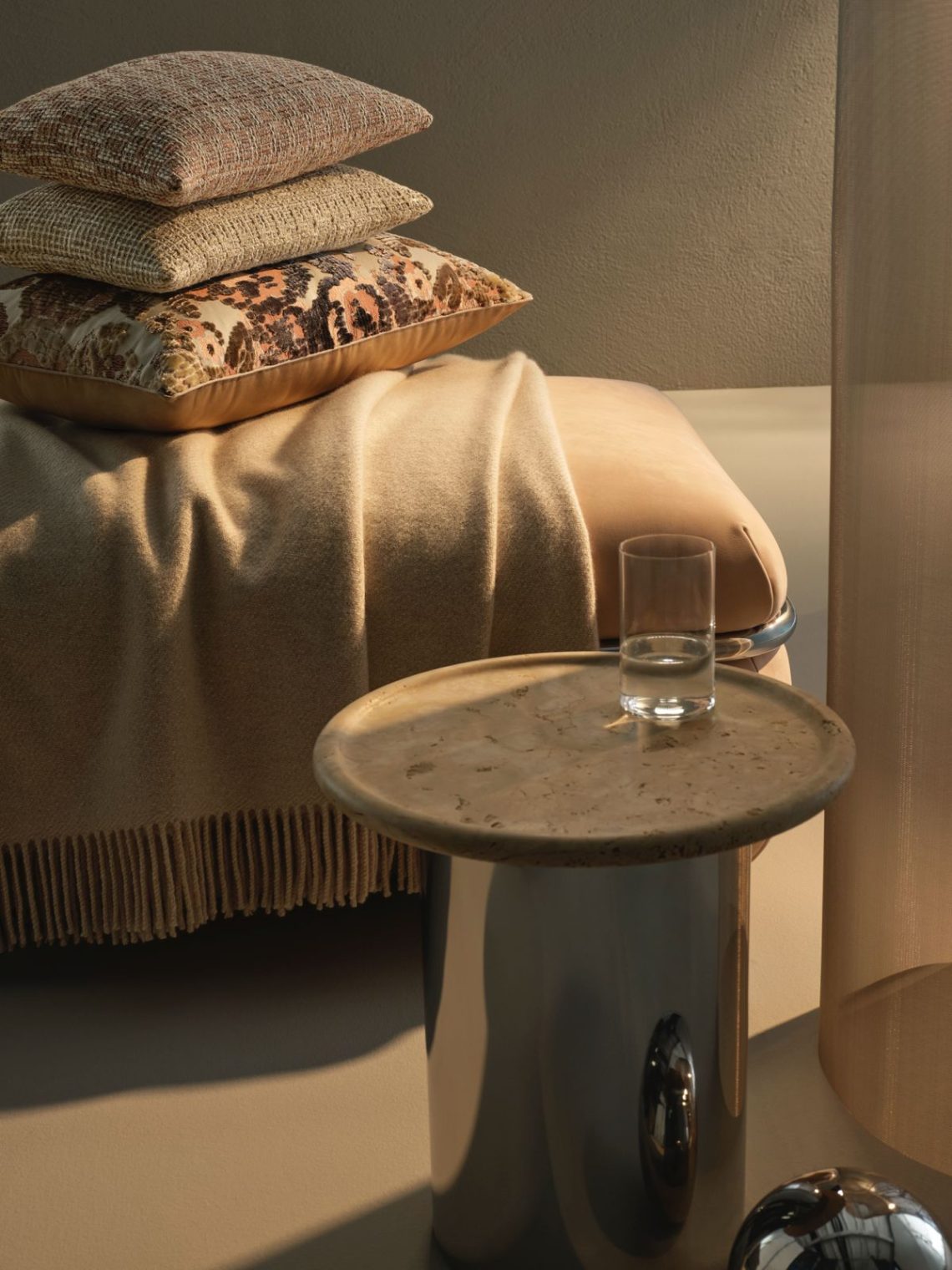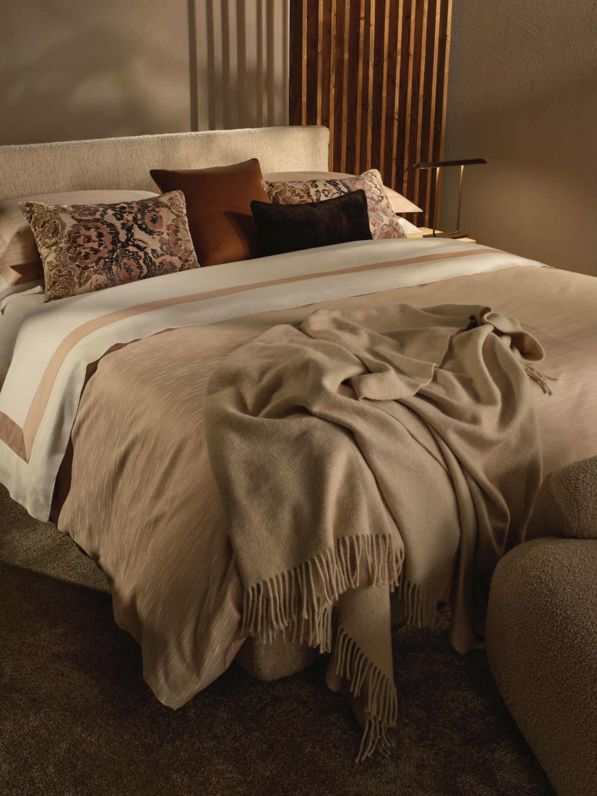 Accessories further enhance the narrative of sanctuary. Tweed, Collector and Lounge cushions introduce texture and depth, while the Cashmere Bouclé Throw and Lightness Blanket blend wool, cashmere and silk for tactile warmth and understated luxury.