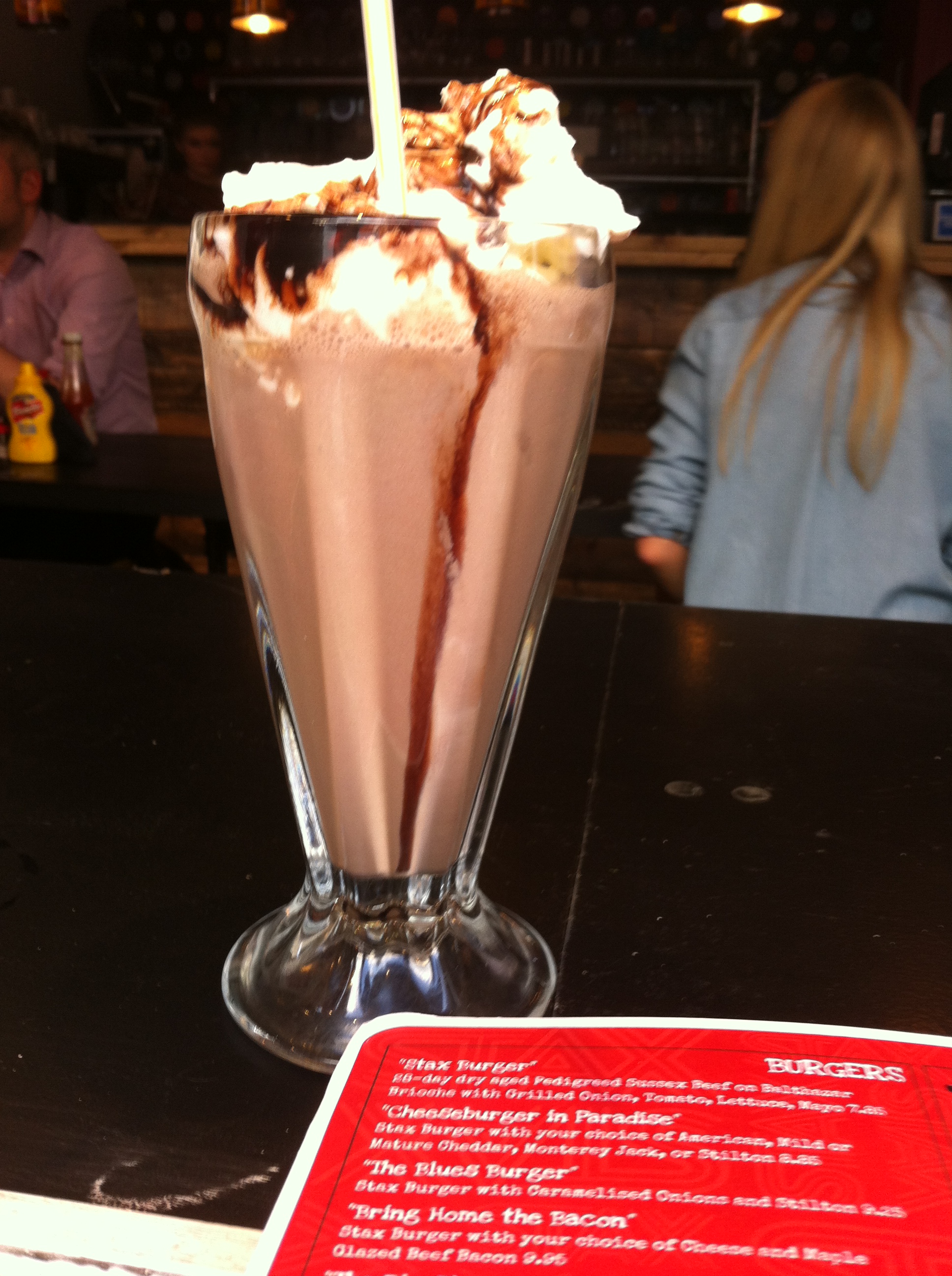 By ‘hard milkshake’ I mean an alcoholic milkshake, which is the best type of milkshake. I was handed my ‘chocaholic’ milkshake, which was a combination of chocolate, rum, fudge and delicious cream on top. This was fantastic and was an excellent introduction to Stax’s beverage offering. They also serve a range of cocktails, beers, wines and ice cream floats. Ice cream floats is unsurprisingly ice cream floating inside an alcoholic or non-alcoholic drink. This sounds like a child’s idea of heaven, but I didn’t have the courage to go for this.