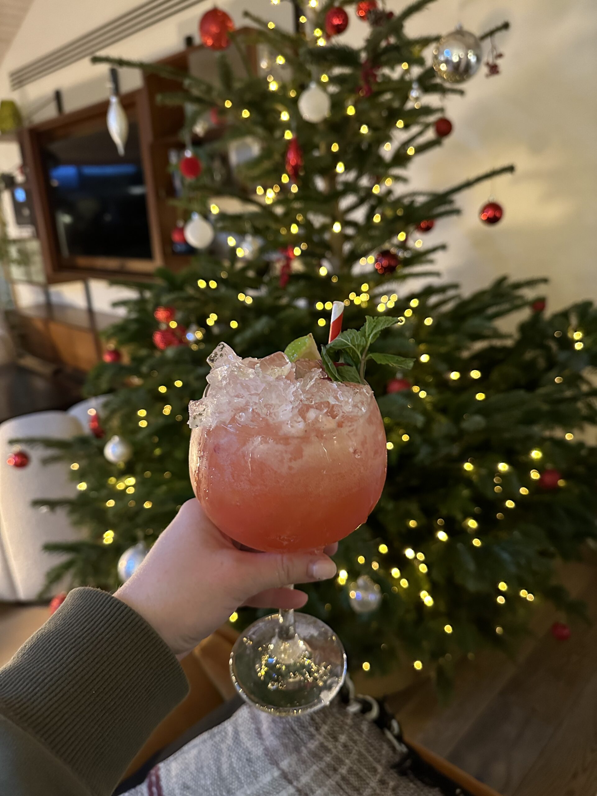 Before a lovely night in our room, we spent time in the hotel bar having the festive cocktails on offer – The English Garden Spritz was a winner and bar staff even made me a delightful Bees Knees which was off menu.