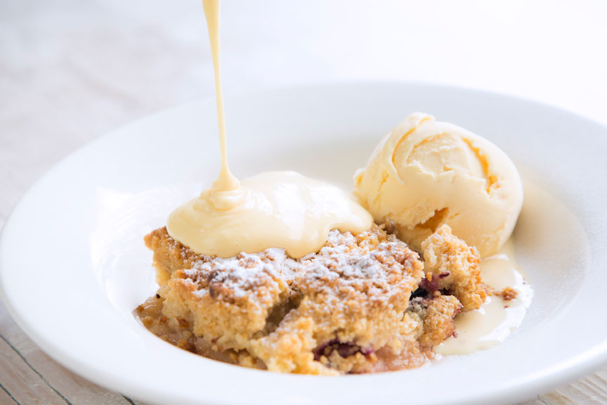 Able to make a stellar savoury course is one thing, but finishing strong is a rare skill, and Ffiona’s. The apple and blueberry crumble was exactly what it should be: fruity and warm with just the right amount of crumble, not too sweet, and utterly delicious with either ice cream or custard. Both choices were excellent, but mixed with a generous pour of custard? Nostalgia at its finest.