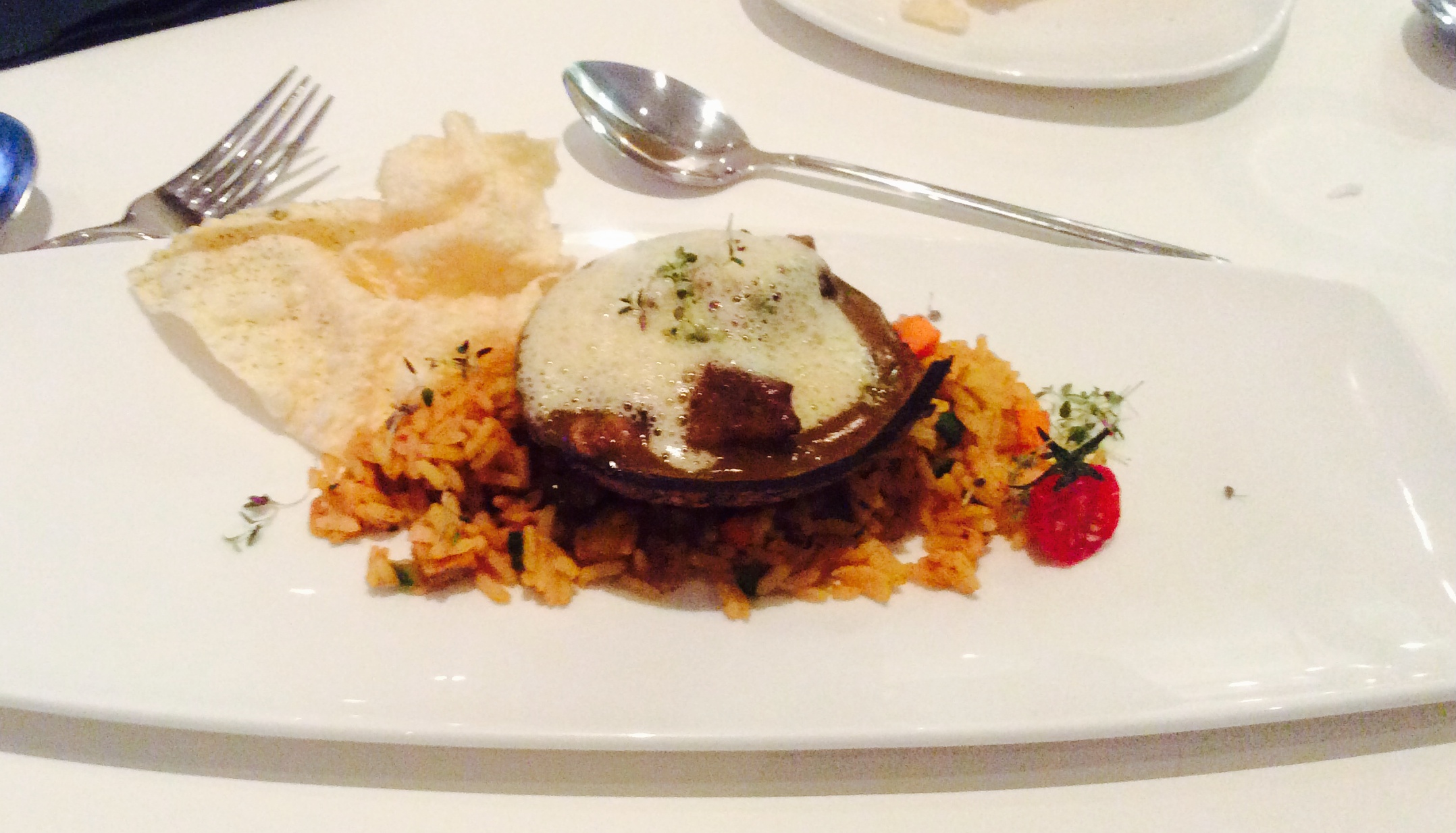 Our next course the pre-main was a traditional Caribbean dish of Barbadian Christmas pudding with souse. The sweet sweet potato balanced the spicy pulled pork in a mouth-watering mix. Delish.