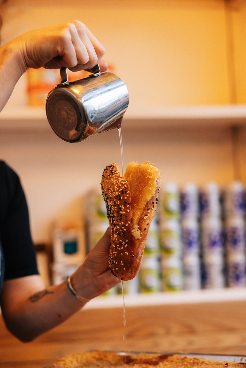 The cheese is warm and pulls out as you take a bite, and the sweetness from the pistachios and the dough pairs perfectly with the savoury flavour.