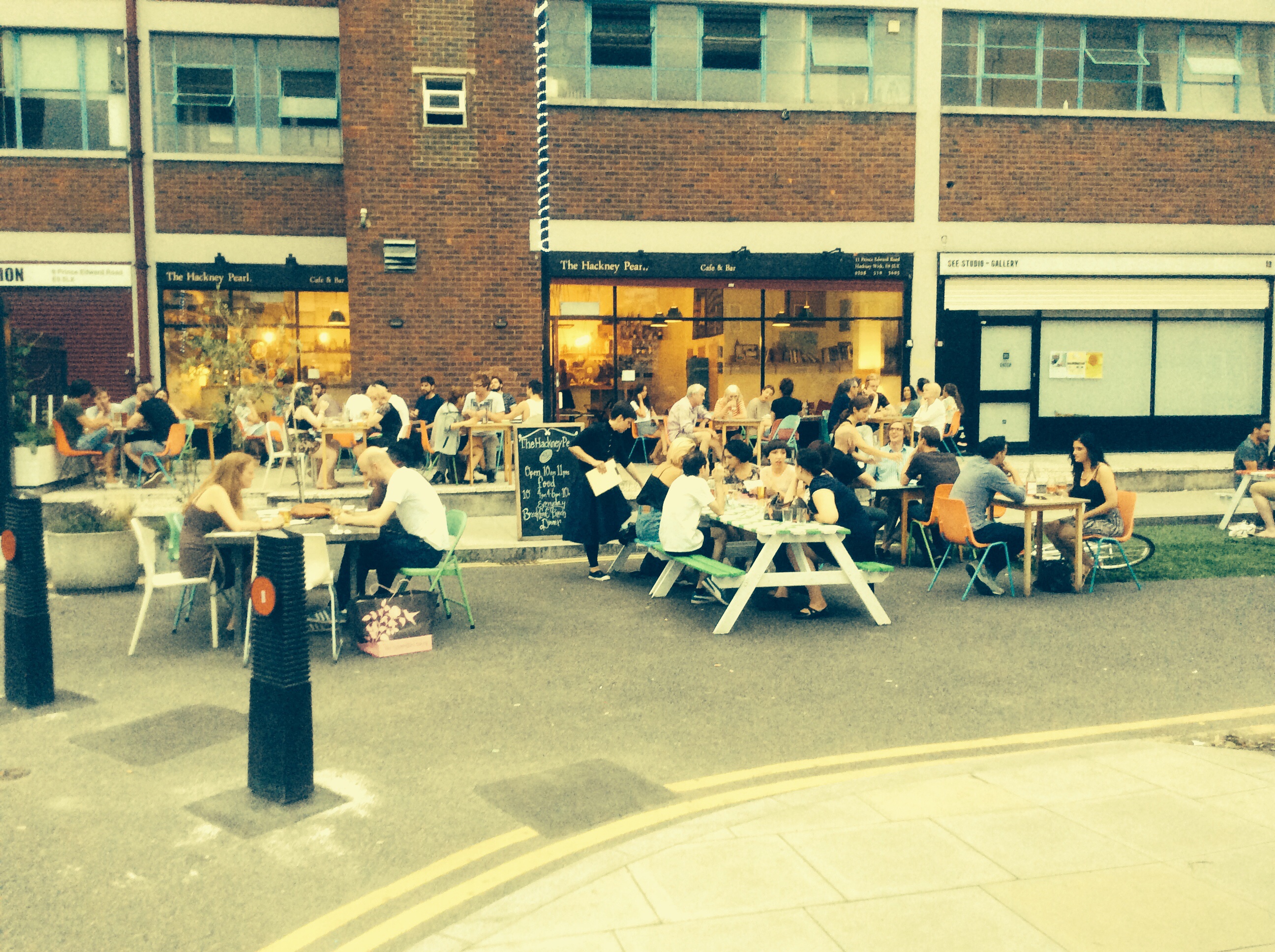 The Pearl is conveniently located a stones throw away from Hackney Wick station, so we didn’t have to venture too far, and plopped onto one of the outdoor tables when we reached our destination. Luckily they had numerous tables which extended onto the street and actually had to bring more out upon demand.