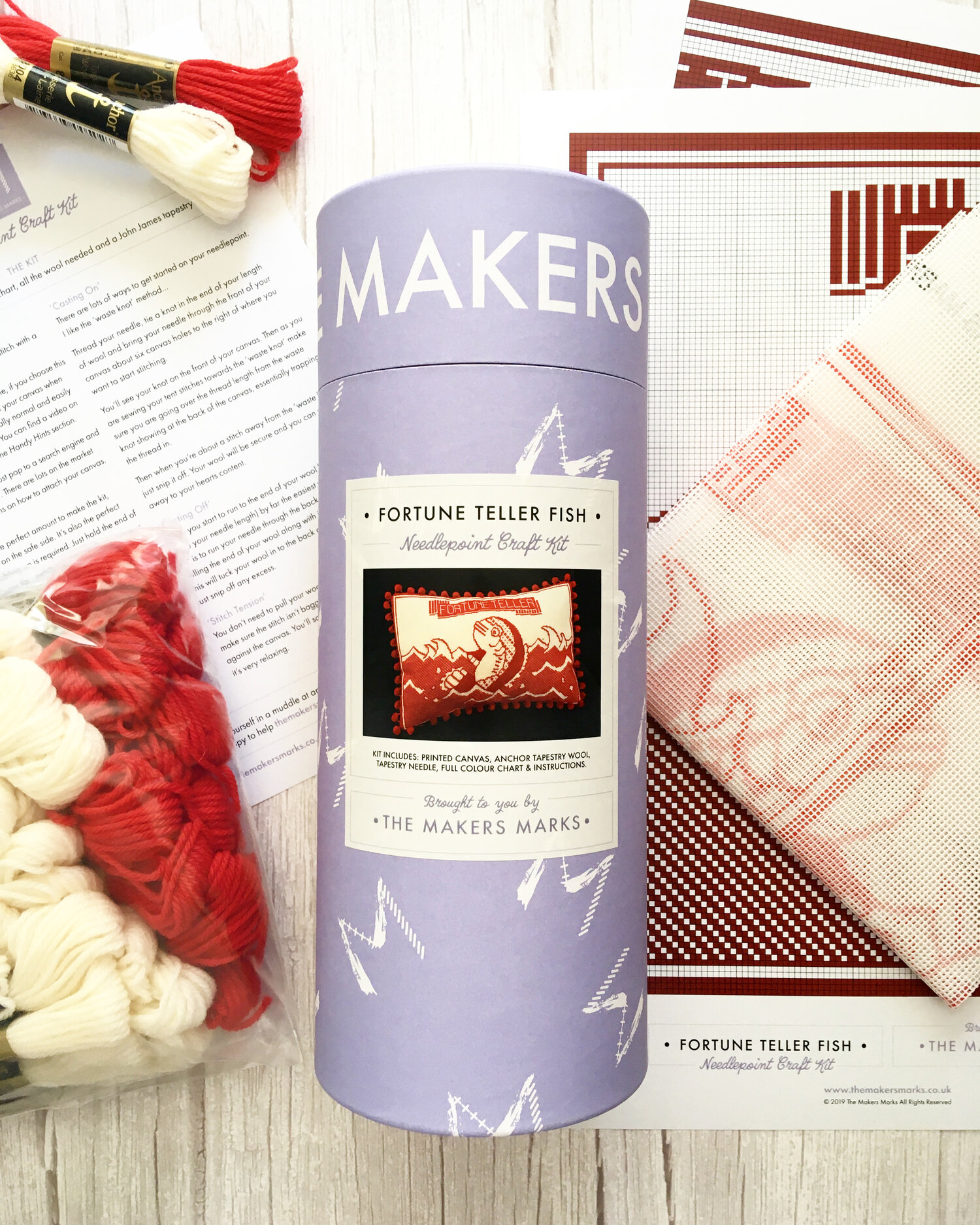 This nostalgic needlepoint tapestry kit featuring the iconic Fortune Teller Fish, a favourite from founder Emma’s childhood.