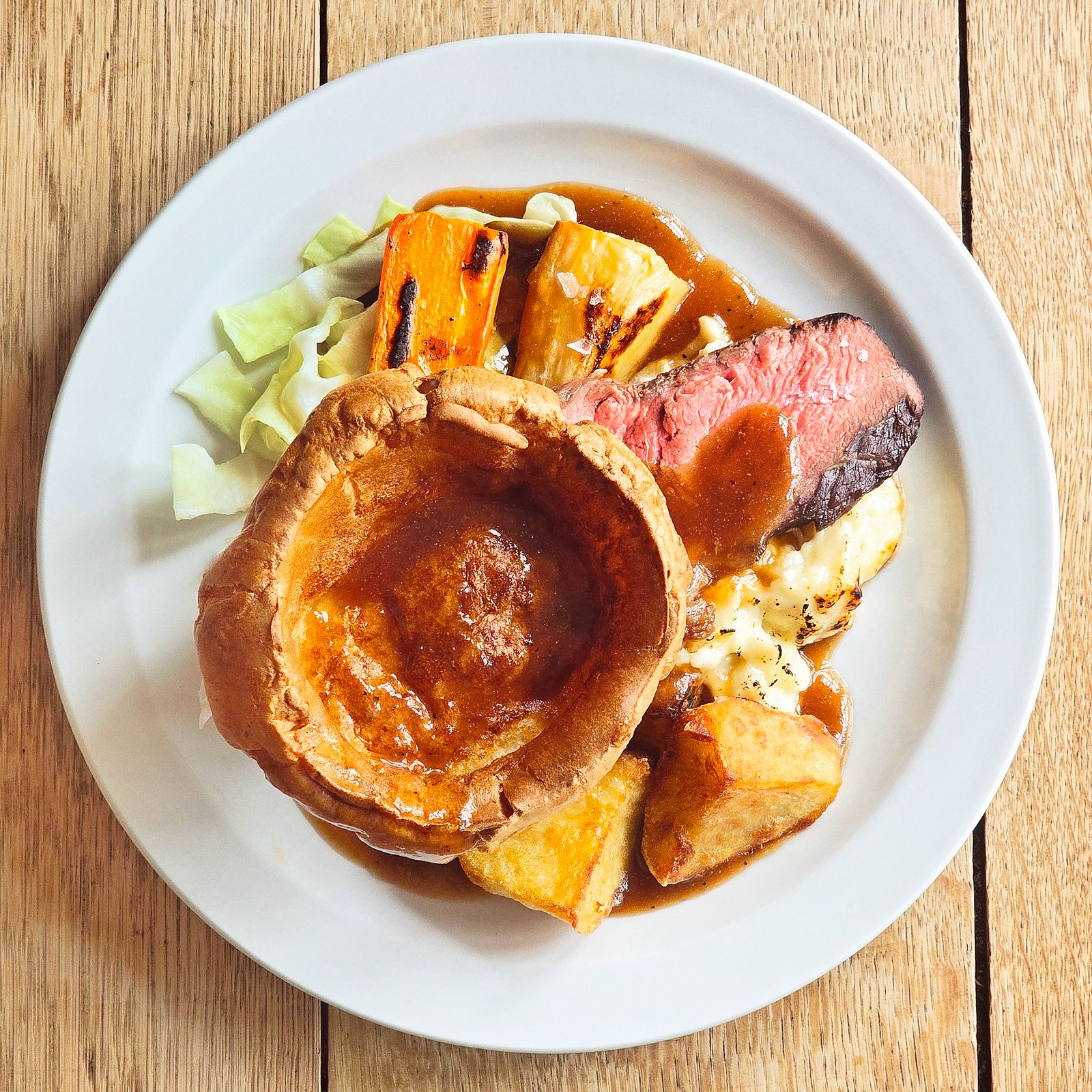 No detail is overlooked when it comes to the trimmings. Roast potatoes are crisp on the outside, fluffy within; Yorkshire puddings are sky-high and satisfyingly chewy; the vegetables, far from an afterthought, are roasted and seasoned to perfection.