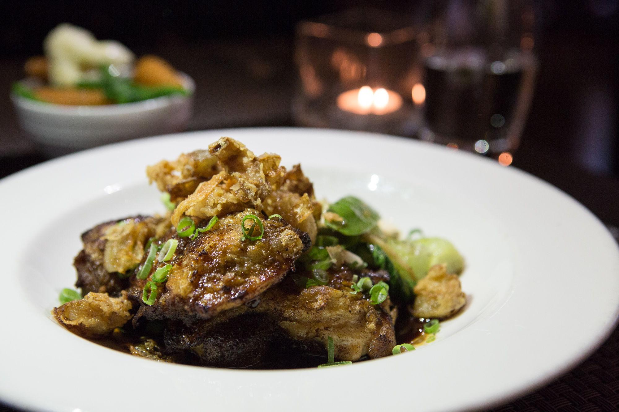 For the main I choose the five spiced crispy chicken thigh, bok choy, crispy onion and jasmine rice. the chicken was cooked well and marinated perfectly, giving a nice tangy flavour to the chicken. My guest went for the barley couscous, roasted squash, sweet potato and cauliflower ragout, a dish bursting with different flavours, it was a generous size and went down a treat with my guest.