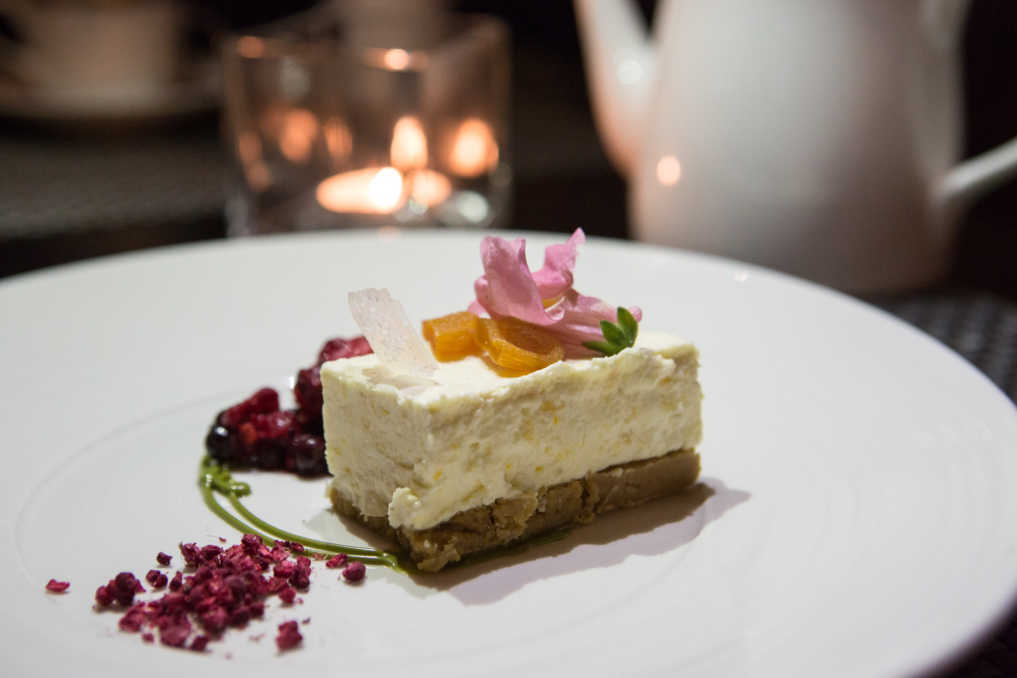 Of course no fine dining is complete without desserts, we went for the English strawberry trifle with mascarpone cheese, which came in a glass jar, it was sweet and creamy, definitely a winning choice. The other desert was the apricot cheesecake, with raspberry compote. This was a lighter desert with the perfect amount of sweetness! We were well looked after by the waitress, it was great to see such high level of customer service being offered throughout the hotel.