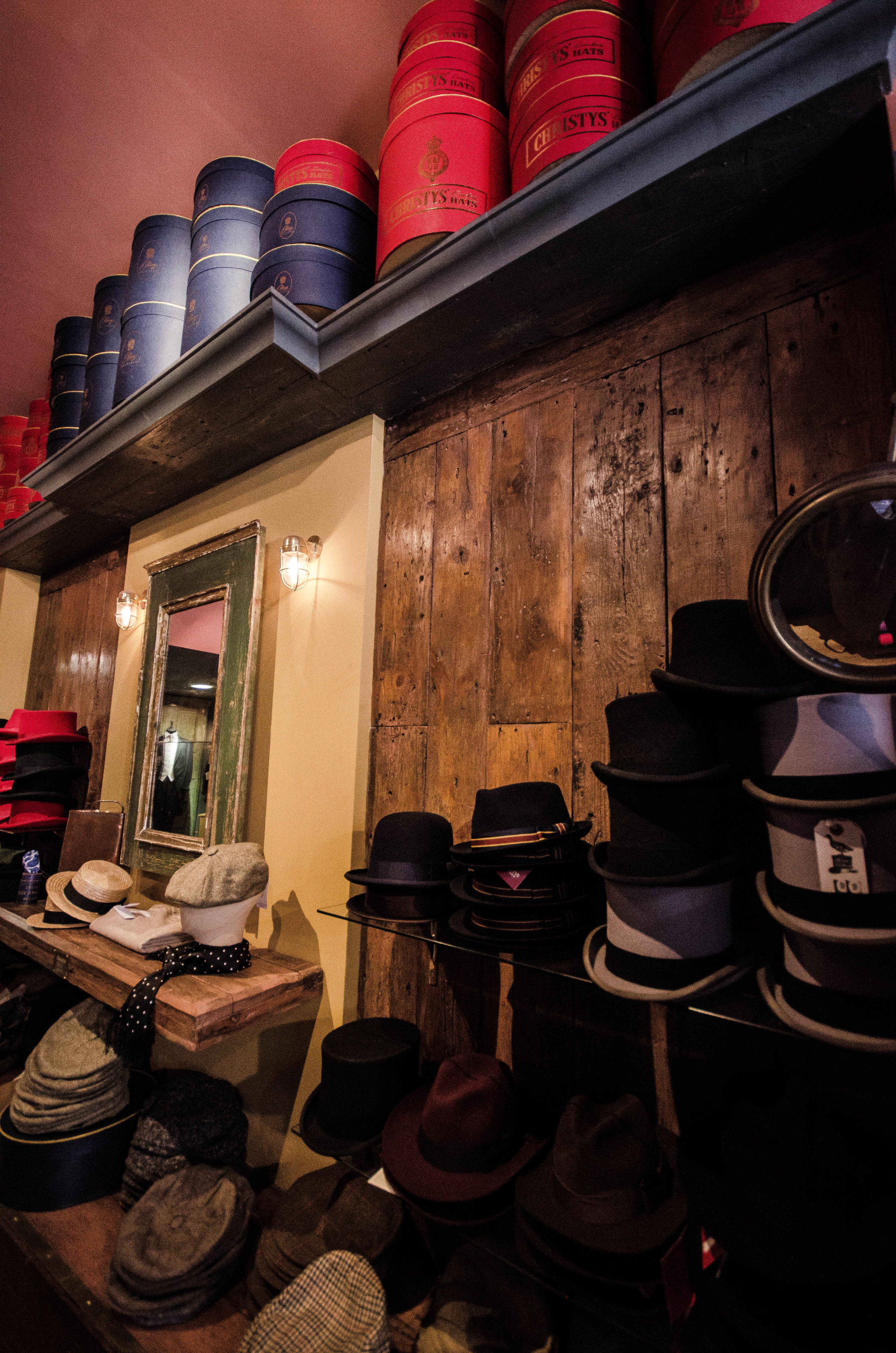 Adam who runs the shop is responsible for the visual merchandising and scenes that play out across the store and Daniel is the newly employed weekend assistant and sartorial aficionado. They were both bedecked in hats from Christies and Daniel in more tweed than you could shake a shooting stick at and looked right at home among the burnished wood and hat boxes.