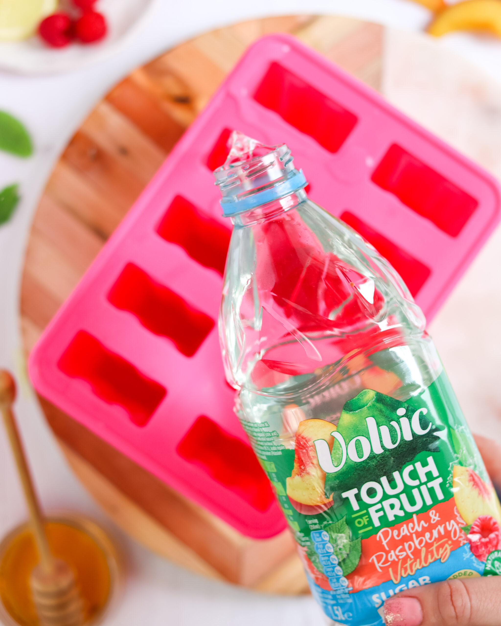 How to make the Volvic Touch of Fruit Peachberry ice lolly: