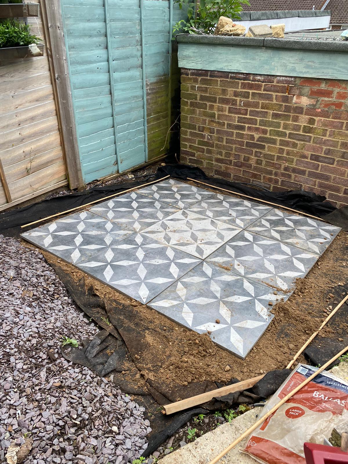 We were sent the gorgeous Welford Geometric tile in Anthracite and Grey. The tiles’ dimensions are 60x60x2cm format. It was an easy process to install the tiles in the garden following the helpful tips on their website and YouTube videos.