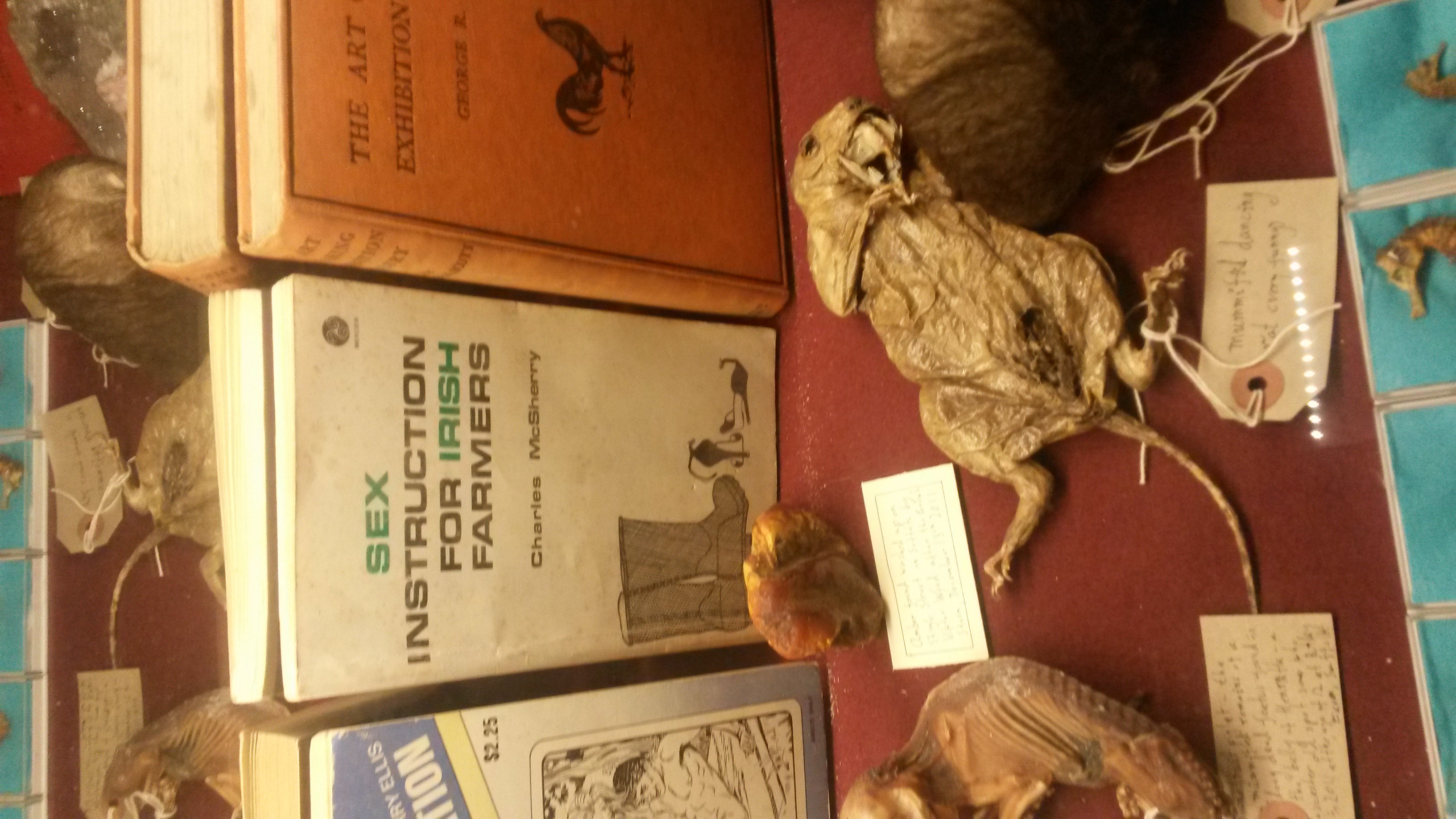 As we descend mummified ants crawl over a half monkey half fish and the collection reveals itself. Unassuming but endlessly surprising… knitting moths, a dried dancing rat and Russell Brand’s pubes…