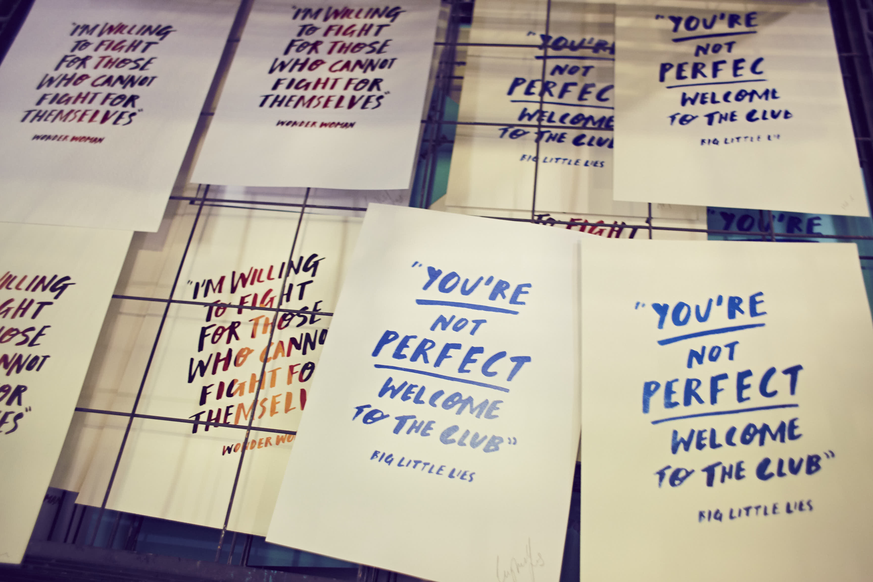 Print Club London is a renowned East London Print Studio and gallery. Exclusively for this event, Print Club London created three quote artwork pieces inspired by Wonder Woman, Big Little Lies and Girls. The quotes were: ‘I’m willing to fight for those who cannot fight for themselves’, ‘You’re not perfect welcome to the club’ and ‘Enjoy going through life as yourself’ respectively.