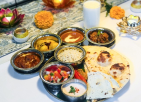 This Diwali, the vegetarian restaurant, OmNom at Namaste in Islington is hosting a vibrant five-day celebration from 16th-20th October, featuring a festive Diwali Thali for £22.95 with standout dishes including Punjabi Samosas, Panchkutiyu Shaak, Kaju Paneer Masala, Tadka Daal, butter naan, pilau rice, and Gulab Jamun. Guests can enjoy 10% off the thali with code DIWALI10 when booking. On 19th and 20th October, the celebration continues with a Grand Celebration Buffet for £20.95 per person.
