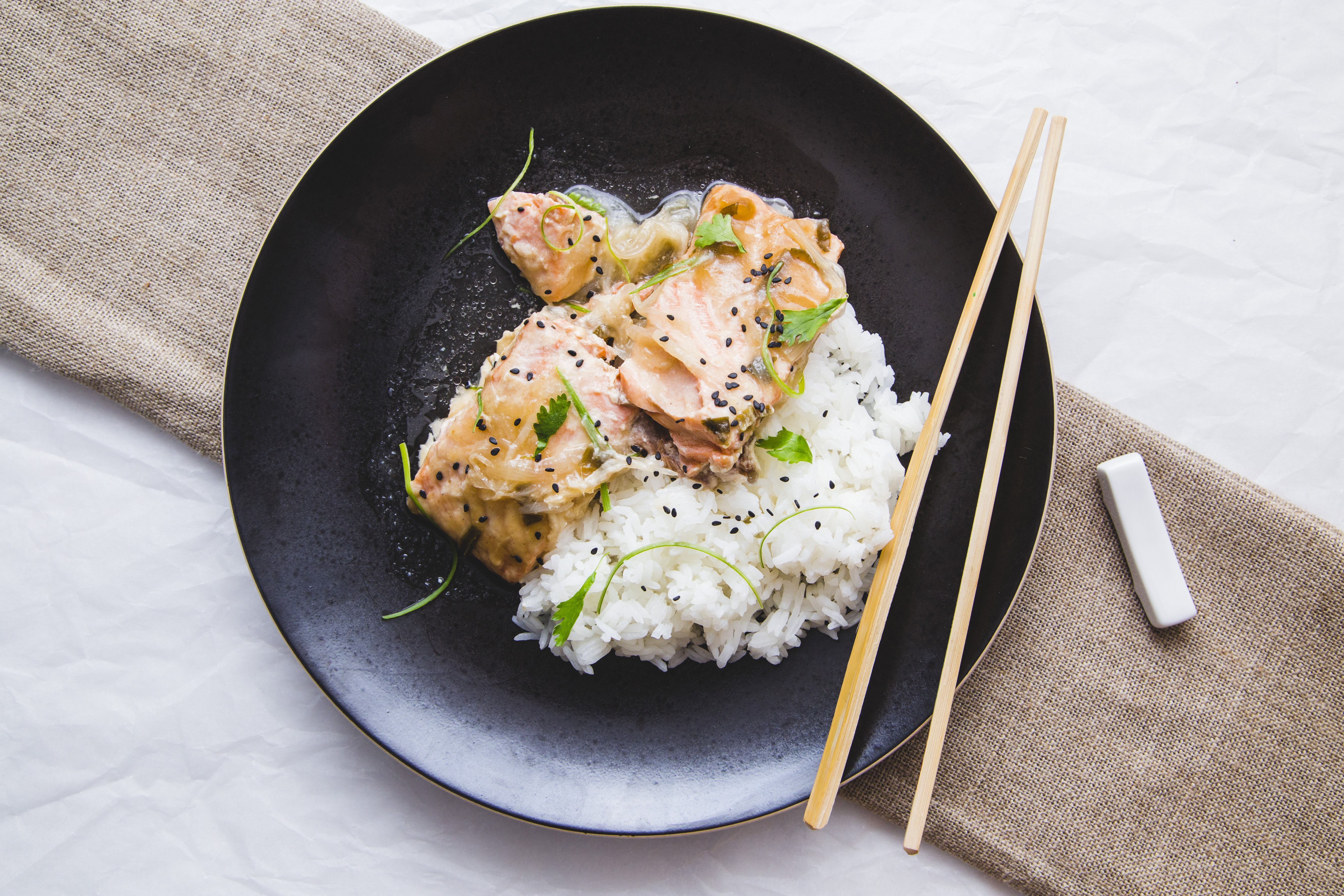 Steamed salmon in ginger and spring onion sauce