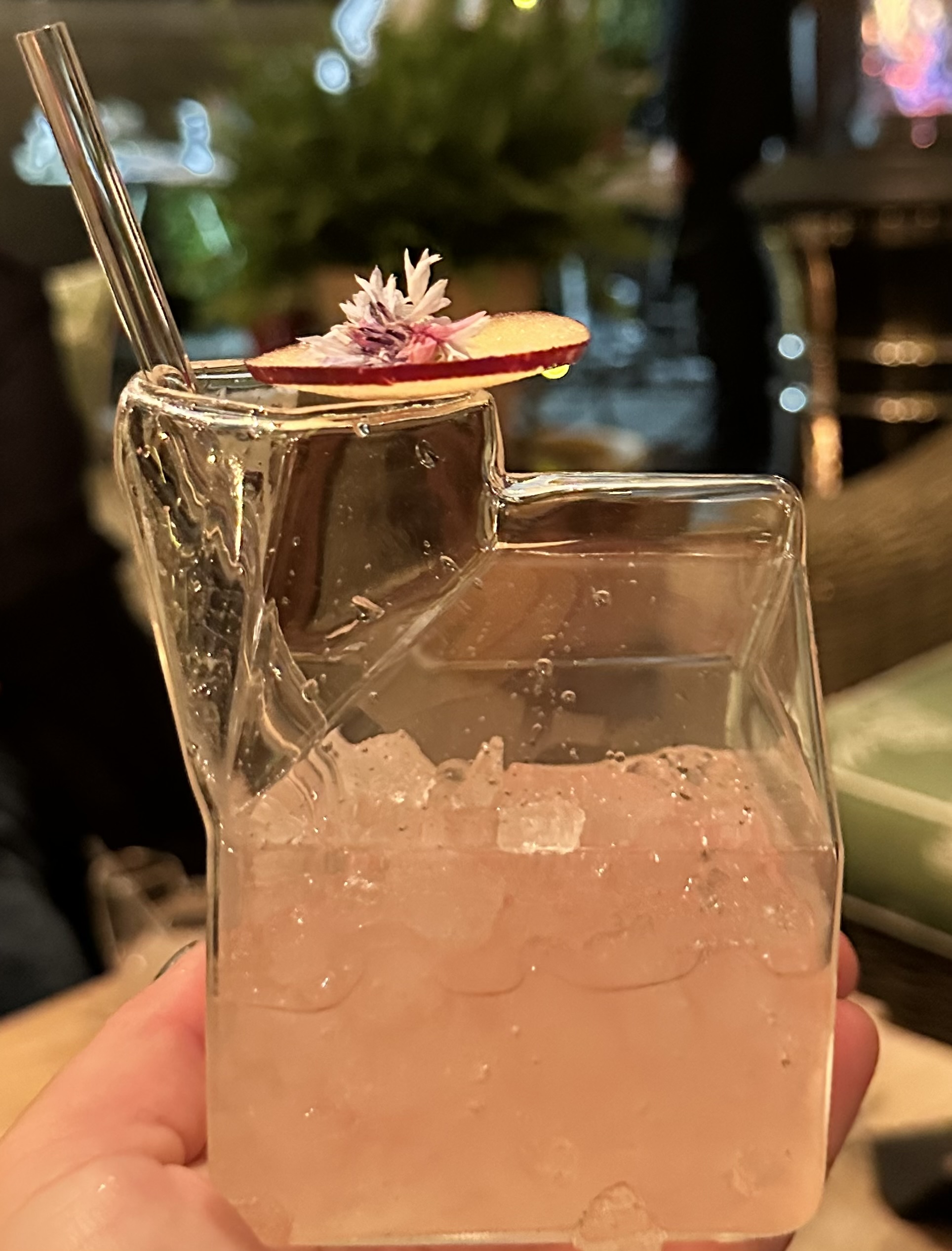 I really liked how there was a combination of cold and hot cocktails. I tended to alternate them a bit for more variety. Staying with the warm cocktails, I felt with the Ginger Blazer that the honey, lemon grass and citric acid overpowered and it reminded me of cough medicine whereas the Hot Toddy had a more balanced combination of gin, cider and lemon and honey. Admiring the various glassware the cocktails come I is also part of the fun. Though the Negroni Caldissimo was my least favourite in terms of taste its glassware (tall with a handle) was my favourite after the milk carton one.